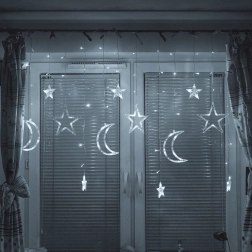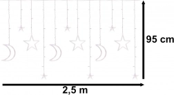Svetelná LED závesná kurtína mesiac a hviezdy 2,5 m, 138 LED – Biela