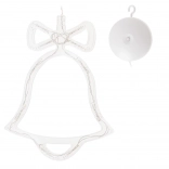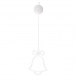 Spríjemnite si zimné večery elegantnou závesnou dekoráciou v tvare zvončeka. Integrované LED s teplým bielym svetlom vytvoria čarovnú atmosféru u vás doma. Vďaka batériovému napájaniu a prísavke ju ľahko umiestnite na okno, dvere či stenu – bez káblov a bez starostí.