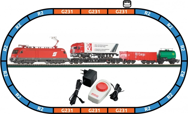 Vdýchnite život svojej železnici s touto kompletnou štartovacou sadou Piko, ktorá obsahuje elektrickú lokomotívu Taurus ÖBB a rôzne nákladné vozy. Súčasťou je tiež figúrka strojvodcu a osvetlenie s prepínaním smeru podľa jazdy.