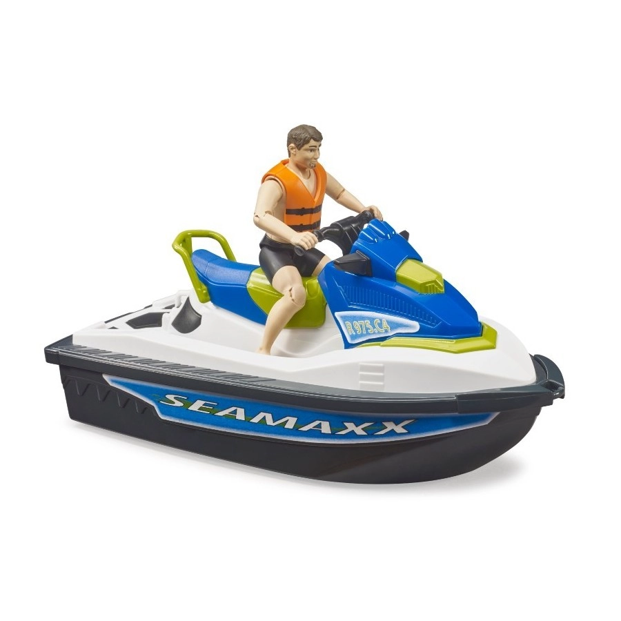 Vodný skúter BRUDER ponúka deťom realistickú hru pri vode aj na súši. Vďaka kvalitnému plávajúcemu telu z odolných plastov a premyslenej konštrukcii sa nepotápa ani neprevracia. Súčasťou je detailne spracovaná figúrka jazdca, pričom paluba pojme až dve figúrky BWORLD.