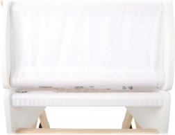 Praktický kôš pod lehátkom a obojstranné neutrálne obliečky s veľkou perinou pre bábiky do 46 cm.