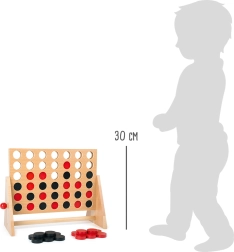 Táto klasická stolová hra pre dvoch hráčov ponúka napínavú stratégiu: vkladajte svoje žetóny tak, aby ste mali 4 v rade – horizontálne, vertikálne alebo diagonálne. Robustný drevený rám a hladké žetóny zaisťujú príjemný haptický zážitok aj dlhú životnosť.