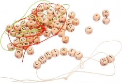 Urobte z učenia písmen zábavu s veľkým dreveným reťazcom z písmen značky Small Foot. Tento set obsahuje 300 ks drevených kociek, ktoré sa dajú ľahko navliekať na štyri farebné šnúrky, ktoré sú súčasťou balenia. Deti môžu tvoriť reťazce mien a slovných spojení, čím sa hravou formou učia poznávať písmená a rozvíjajú svoje schopnosti 'písať'.