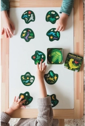 Trénujte svoj postreh s dinosaurami. Táto kartová hra ponúka až päť variant pravidiel a je plná farebných ilustrácií s tematikou dinosaurov. Istotne si ju rýchlo obľúbite aj pre jej skladnosť, je teda vhodná na hru doma aj na cestách. Balené v kovovej krabičke bez použitia plastu. Hlavné vlastnosti pre 2–6 hráčov 5 variant pravidiel praktické balenie Návod na hru: Základná varianta: Každému hráčovi rozdeľte jednu kartu lícom nadol. Balíček otočený lícom nahor umiestnite medzi hráčov. Na dohodnutý signál hráči otočia svoje karty. Hráč, ktorý ako prvý nahlási zhodný symbol na svojej karte a na karte v balíčku, si kartu z balíčka vezme. Takto sa balíček nakoniec doberie a víťazom sa stáva hráč s najväčším počtom kariet. Obrátená varianta: Rozdeľte medzi hráčov karty tak, aby všetci držali rovnaký počet kariet a jedna karta zostala. Hráči svoje karty v balíčku položia pred seba lícom nadol. Zvyšnú kartu, otočenú lícom nahor, položte medzi hráčov. Na dohodnutý signál hráči otočia vrchnú kartu svojho balíčka. Kto ako prvý nahlási symbol zhodný na svojej karte a karte medzi hráčmi, svoju kartu medzi hráčov na vznikajúcu kopu priloží a otočí ďalšiu svoju vrchnú kartu. Takto hra pokračuje, kým nezostane posledný hráč s kartami, a stáva sa tak porazeným. Hráč, ktorý sa kariet zbavil ako prvý, je víťazom. Skupinová varianta: Hrá sa na kolá. V každom kole je pred jednotlivca rozdaná po jednej karte lícom nadol. Na dohodnutý signál hráči svoju kartu otočia a ktorý z nich pomenuje a nahlási symbol zhodný so symbolom na karte iného hráča, svoju kartu mu odovzdá. Takto hra pokračuje, kým jeden hráč neprijme všetky karty v danom kole rozdané. Cieľom hry je zbavovať sa kariet, hráč, ktorý v súčte kôl prijal najviac kariet, je porazený. Rozmer balenia: 10 × 10,5 × 5 cm Vek: 4+ Materiál: kov, papier Počet dielikov: 31 ks