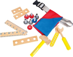 Textilný opasok s praktickými vreckami pojme všetky nástroje – od kladiva a kľúča po skrutkovač, skrutky a matice. Dĺžku ľahko prispôsobíte postave dieťaťa.