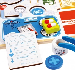Objavte zábavné a vzdelávacie drevené vkladacie puzzle s lekárskou tematikou, ktoré deťom pomôže spoznávať základné lekárske nástroje a zároveň rozvíja jemnú motoriku, logické myslenie a koordináciu ruka–oko. Kvalitné prevedenie z preglejky s bezpečnými farbami zaručuje odolnosť a bezpečnú hru pre deti od 3 rokov.