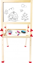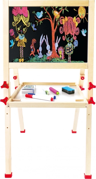 Táto kvalitná detská tabuľa kombinuje bielu magnetickú plochu na pripínanie obrázkov a písanie fixkou s klasickou bridlicovou tabuľou na kreslenie kriedou. Vďaka výškovému nastaveniu a stabilnej drevenej konštrukcii rastie s dieťaťom a skvele sa hodí do detskej izby aj herne.