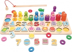 Hra obsahuje rôzne prvky, ktoré deti môžu použiť na rybárčenie, skladanie čísiel alebo stohovanie krúžkov. Všetky časti sú navrhnuté tak, aby ich malé detské ruky mohli ľahko uchopiť, čo podporuje ich samostatnosť a kreatívne skúmanie.