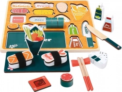 Sada obsahuje drevené komponenty ako sú sushi, omáčky, príbory a nožík na "rezanie", čo umožňuje realistickú a kreatívnu hru. Táto hra je vhodná pre deti od 36 mesiacov, avšak odporúča sa dohľad dospelej osoby u detí do 3 rokov.