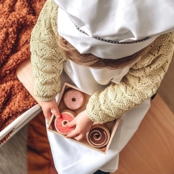 Každý donut je vyrobený z kvalitného dreva s realistickým dizajnom, ktorý prispieva k zábavnej a bezpečnej hre.