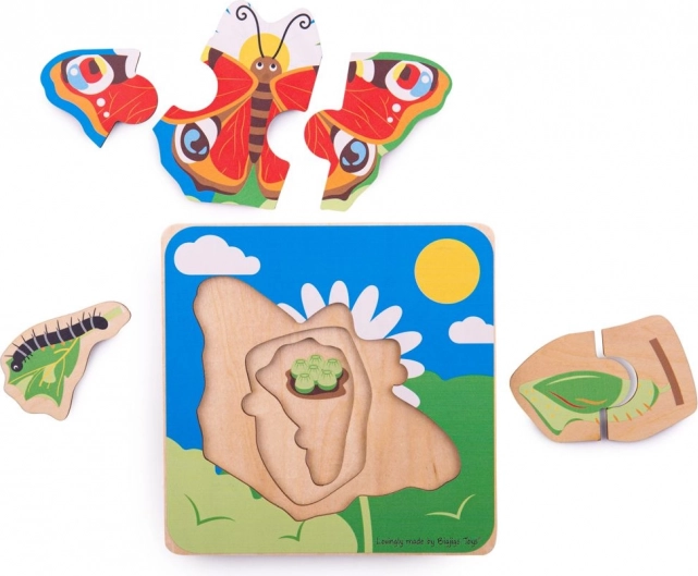 Toto vrstvené drevené puzzle je ideálnou učebnou pomôckou pre malých objaviteľov. Deti krok za krokom spoznajú, ako sa z vajíčka stane húsenica, kukla a napokon krásny motýľ. Vďaka štyrom vrstvám a pevným dielikom je skladanie intuitívne a zábavné.