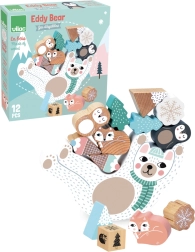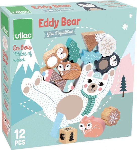 Balančná hra macko Eddy v jemných škandinávskych tónoch prináša zábavu pre deti aj rodičov. Deti hádžu farebnou kockou a podľa padnutej farby pridávajú drevené dieliky na hojdiaceho sa macka. Hra trénuje zručnosť, sústredenie a rovnováhu a zároveň podporuje trpezlivosť aj logické uvažovanie.