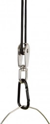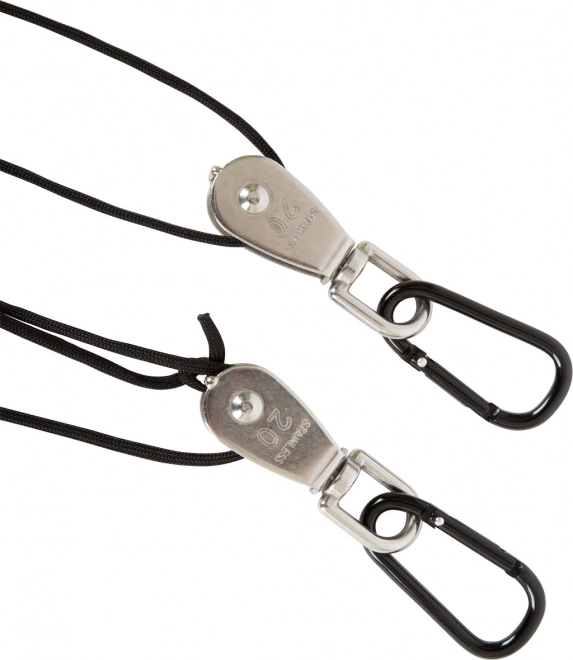 Praktické karabíny umožnia rýchle pripevnenie k trámu, háku alebo provizórnemu kotveniu – bez náradia, za chvíľku.