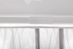 Šesť vstupov so svetlými, polopriehľadnými záclonkami možno stiahnuť a zviazať na mašle. Deti majú dostatok svetla, vzduchu aj pocitu bezpečia.