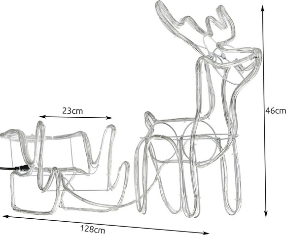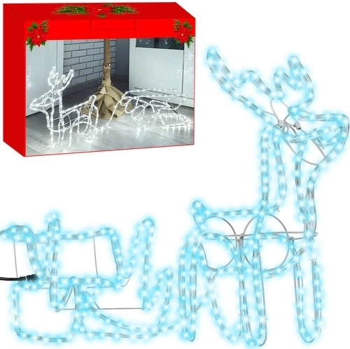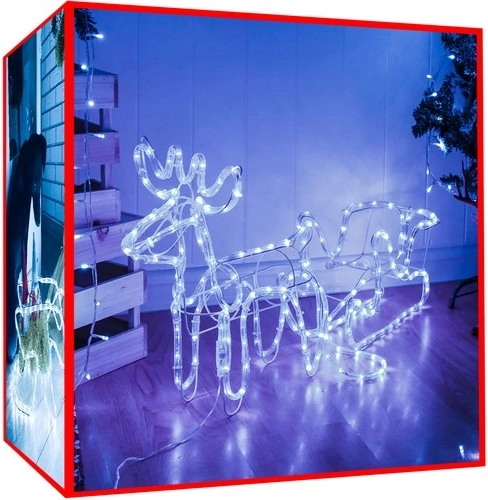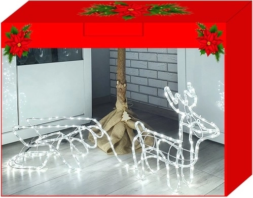 Sane sú vyrobené z kovového rámu natretého na bielo. Svetlá LED sú uzavreté v priehľadnej trubici, ktoré majú po zapnutí krásny efekt. 3D sob so sánkami budete sa cítiť ako v krajine Santa Clausa.