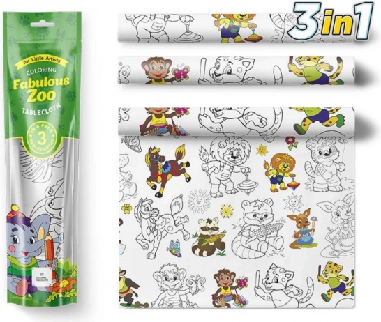 Každý obrus možno ľahko rozdeliť na tri časti, čo podporuje spoluprácu a zdieľanie medzi viacerými deťmi. Vyfarbovanie povzbudzuje deti k tvorivosti, zlepšuje koncentráciu a jemnú motoriku. Obrus možno využiť ako na detských party, tak aj ako bežný obrus na stôl.