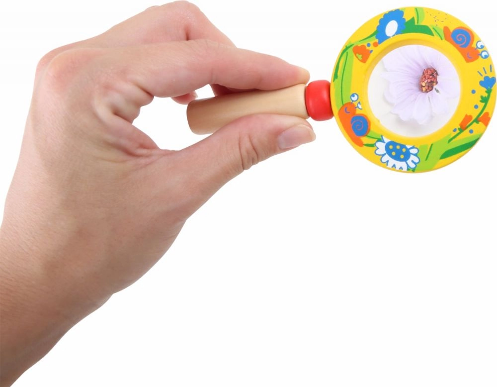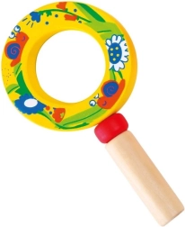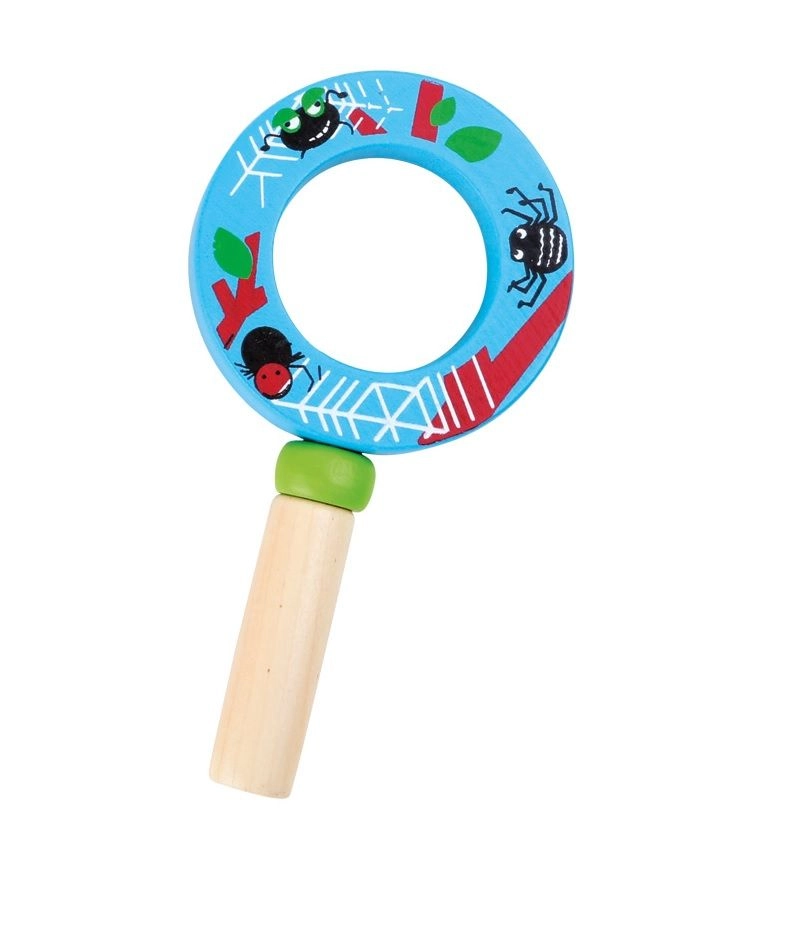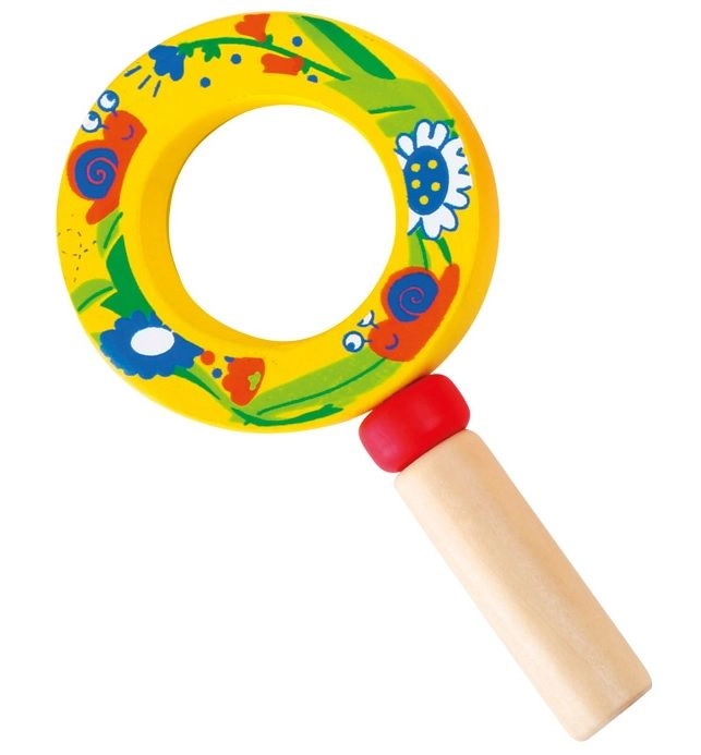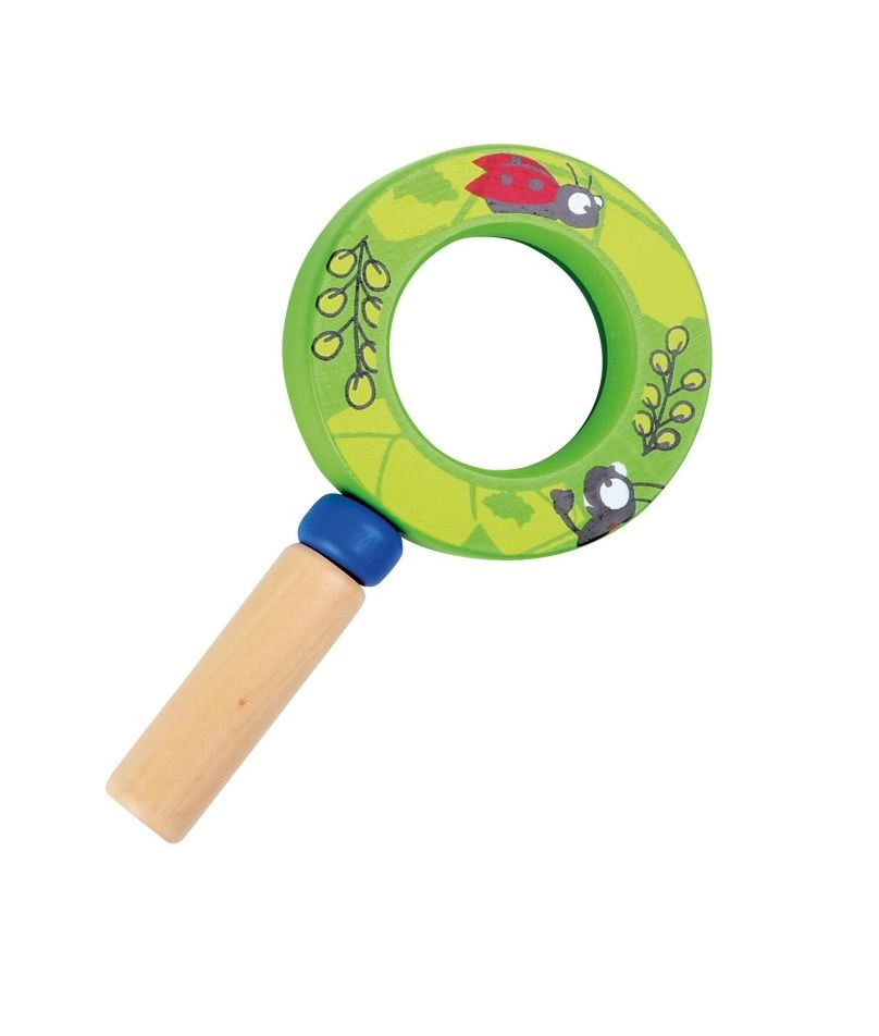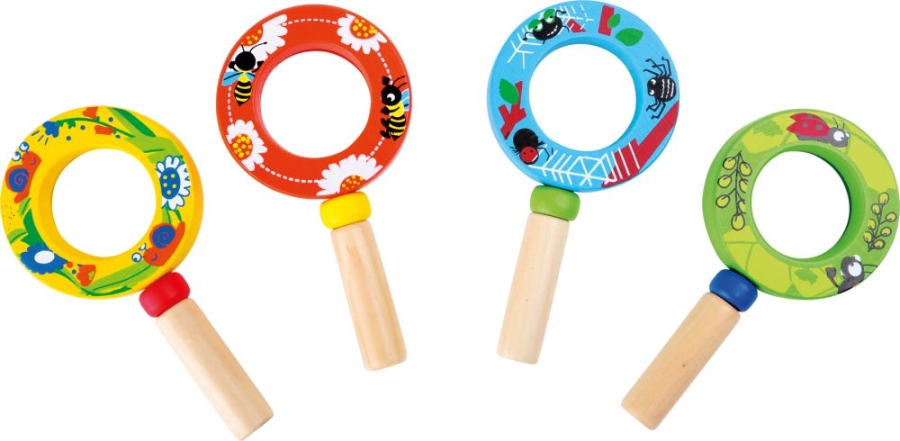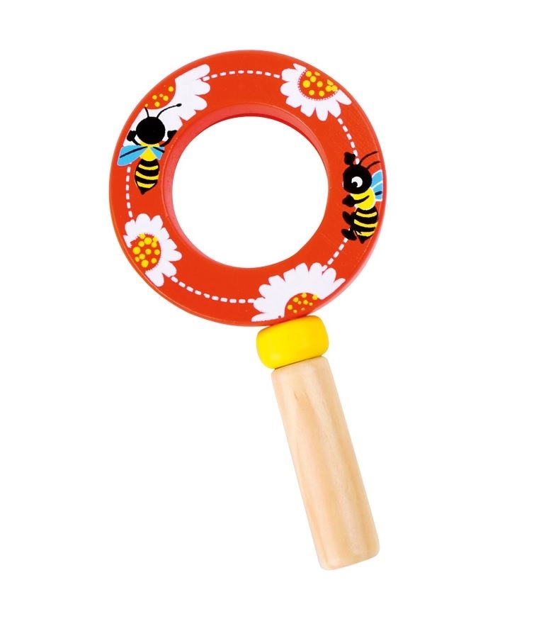 Táto kvalitná detská lupa kombinuje pevnú drevenú rukoväť a ľahký plastový šošovkový prvok, aby bola bezpečná a pohodlná pre malé ruky. Veselé ilustrácie hmyzu a kvetov motivujú deti k objavovaniu detailov okolitého sveta – od kvetov až po malé chrobáčiky.