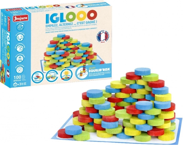 S drevenou stavebnicou Jeujura Igloo sa malí stavitelia môžu pustiť do vytvárania pevnej a štýlovej konštrukcie. Táto hračka podporuje schopnosť sústredenia a jemné motorické zručnosti, ideálna pre deti od troch rokov. Stavebnica je starostlivo vyrobená z bukového a borovicového dreva pochádzajúceho z Francúzska. Každý diel je natretý bezpečnými farbami na vodnej báze, čo zaisťuje súlad s ekologickými normami.