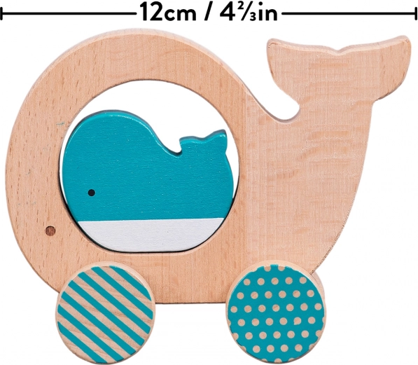 Roztomilá drevená hračka na kolieskach v podobe veľryby s vyberateľným mláďaťom podporuje jemnú motoriku a fantáziu detí od 12 mesiacov. Vyrobená zo 100 % FSC bukového dreva, lakovaná netoxickými farbami na vodnej báze a balená v eko obale z recyklovaného kartónu. Bez BPA a olova, spĺňa všetky bezpečnostné normy.