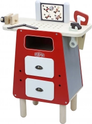 Vilac Môj pracovný ponk je navrhnutý tak, aby deti mohli bezpečne experimentovať a rozvíjať svoje mechanické zručnosti. Vďaka suchému zipsu môžu deti „rezať“ drevo, kladivom zatĺkať drevené klince a s pomocou skrutkovača a kľúča montovať a demontovať rôzne diely. Táto hračka povzbudzuje predstavivosť, trpezlivosť a vynaliezavosť.
