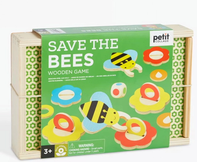 Táto hra je ideálna pre deti od 3 rokov, ktoré si chcú hravou formou osvojiť význam včiel v našom ekosystéme. Hráči hádžu kockou, hľadajú zhodu farieb a tým pomáhajú včelám zbierať nektár. Celé herné balenie je vyrobené z odolnej preglejky a recyklovaného papiera, čo zaručuje ekologický prístup.