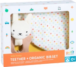 Roztomilý dizajn zajačika poteší každé dieťa a jeho rodičov. Hryzátko je vyrobené z organickej bavlny a pevného bukového dreva s FSC certifikátom, čo zaručuje šetrnosť k prírode. Podbradník je savý a nastaviteľný vďaka cvokom, dokonale chráni detské oblečenie.