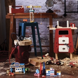 Hľadáte hračku, ktorá bude rozvíjať motorické zručnosti a kreatívne myslenie vašich detí? Obojstranný kufrík s náradím Vilac je tou správnou voľbou! Tento set obsahuje až 96 dielov, ktoré umožňujú zostavenie modulárnych konštrukcií ako nákladného auta, žeriavu alebo dokonca robota. Dizajn Ateliéru Vilac zaručuje kvalitné spracovanie a atraktívny vintage vzhľad. Deti si budú môcť vyskúšať rolu malého kutila a rozžiariť svoje hračkárske kráľovstvo.