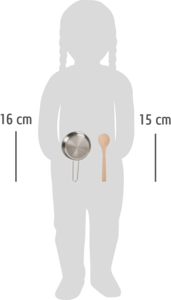 Hrniec s odnímateľnou pokrievkou pomáha k realistickým herným scenárom a rozvíja detskú predstavivosť. Drevená varecha spolu s kovovými nástrojmi ako je špachtľa a metlička, ponúkajú široký výber herných možností. Textilná rukavica a podložka pod hrniec dodávajú autentický nádych a prispievajú k bezpečnosti pri hre.