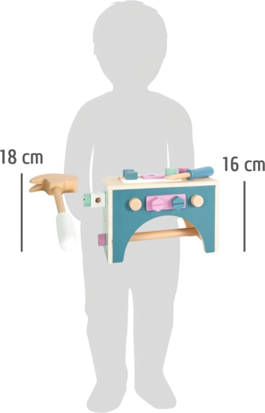 Táto drevená debnička s náradím je ideálna pre deti, ktoré chcú napodobňovať skutočné opravy a remeselnú prácu. Jednoduchý škandinávsky dizajn v jemných pastelových farbách sa skvele hodí k akémukoľvek detskému izbe: