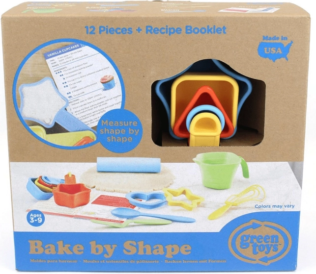 Zábavná a bezpečná sada pre malých cukrárov, ktorá učí pečenie hrou. Obsahuje 12 dielov vrátane odmeriek, vykrajovátok a valčeka. Vyrobené z recyklovaného plastu, bez BPA, PVC a ftalátov, vhodné do umývačky a schválené na styk s potravinami.