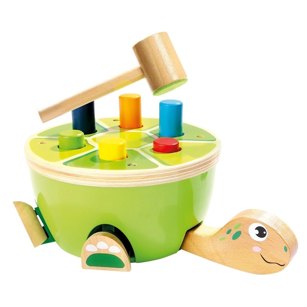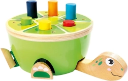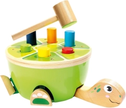 Táto korytnačia zatĺkačka od Bino je ideálnou voľbou pre prvé motorické hry. Deti pomocou dreveného kladivka s mäkkým plsteným poťahom bezpečne zatĺkajú farebné kolíčky do panciera. Pri hre sa prirodzene rozvíja jemná motorika, koordinácia ruka–oko aj sústredenie a vďaka veselému prevedeniu hračka udrží pozornosť na dlhý čas.
