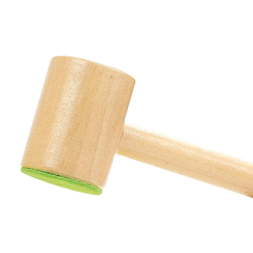 Drevené kladivko s plsteným poťahom tlmí hluk a chráni povrch hračky, takže je hra príjemná aj pre rodičov.