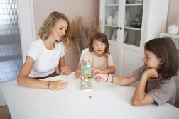 Hru zvládnu deti už od 3 rokov a môžete ju prispôsobiť veku aj zručnostiam hráčov – hrajte klasicky, alebo pridajte drevenú kocku pre nové výzvy. Balenie 2v1 navyše uľahčuje stavanie a bezpečné uloženie dielikov.