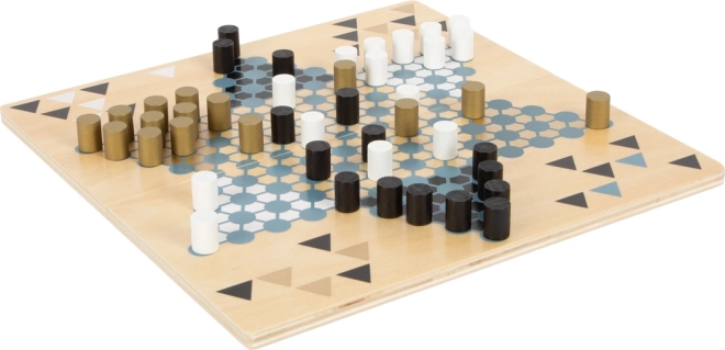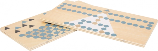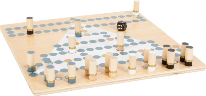 Objavte obojstrannú drevenú hru small foot Gold Edition, ktorá spája klasické stratégie Halma a Bariéry (Malefiz) v elegantnom prevedení so zlatými detailmi, dymovo modrou, čiernou, bielou a prírodným drevom. Magneticky spojená dvojdielna doska zaistí stabilitu a jednoduché skladovanie v odolnom boxe. Skvelá voľba pre rodinnú zábavu, rozvoj strategického myslenia a sústredenia.