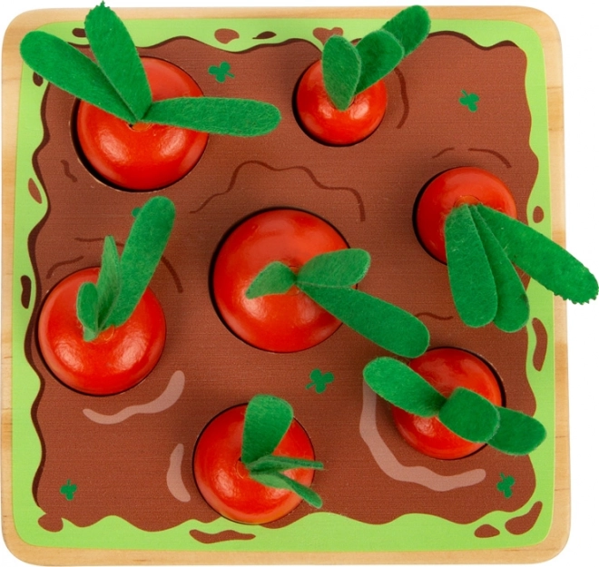 Inšpirácia z Montessori metódy deťom poskytuje možnosť učiť sa zábavnou formou. Hra na vkladanie a triedenie sadí na sedem mrkiev rôznych veľkostí, ktoré deti pomocou porovnávania vkladajú do správnych otvorov na doske. Tento herný set pomáha rozvíjať jemnú motoriku, porozumenie veľkostiam a pozorovanie. Navyše vďaka realistickému dizajnu zelených plstených častí podporuje aj hranie rolí a rozvoj fantázie mladých záhradníkov.