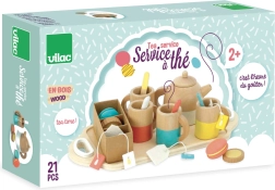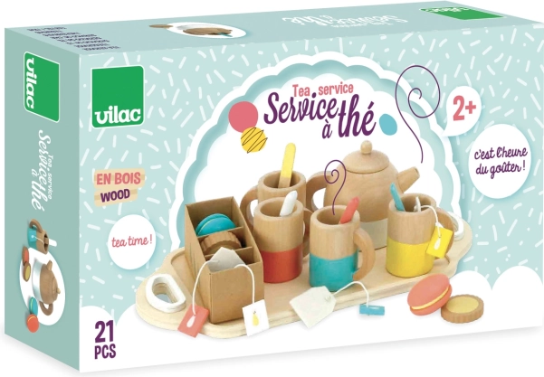 Veľká drevená čajová súprava VILAC prináša deťom autentický zážitok z hry na čajový dýchánok. Vďaka 21 starostlivo spracovaným dielom v príjemných pastelových odtieňoch si deti môžu servírovať čaj, ponúkať makrónky a sušienky a učiť sa zdvorilosti i pravidlám stolovania.