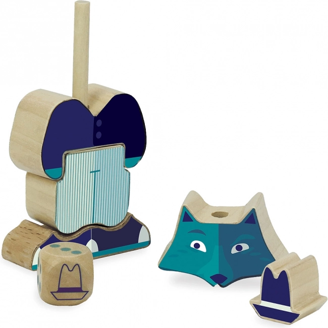 Robustné drevené dieliky a farebné tvary lákajú k stavaniu domčekov a skladaniu vlka. Deti si prirodzene rozvíjajú jemnú motoriku a fantáziu.