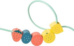 Farebné koráliky v tvare ovocia na ohybnom vodiči podporujú jemnú motoriku a koordináciu pohybov pri každodennej hre.