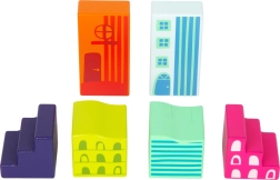 Pri stavaní veží, mostov a fantazijných miest si malí stavitelia precvičia koordináciu pohybov, trpezlivosť aj priestorovú predstavivosť. Hladké povrchy, sýte farby a rozmanité tvary lákajú k opakovanej hre a podporujú samostatnosť aj zmyslový rozvoj.