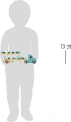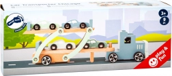 Sada obsahuje kamión s návesom a celkovo štyri športové autíčka. Hra rozvíja koordináciu oko–ruka, jemnú motoriku aj kreatívne rozprávanie príbehov. Vďaka kvalitným materiálom a hladko opracovaným hranám je hračka vhodná pre deti od 3 rokov.