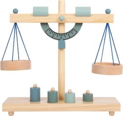 Pri obsluhe „zákazníkov“ sa deti učia komunikácii, spolupráci a spravodlivej výmene. Vďaka kvalitnému drevu s prírodným vzhľadom a príjemným sivo-modrým tónom je váha nielen odolná, ale aj esteticky lákavá a bezpečná pre detské ruky.