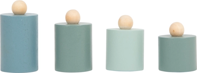 Obsahuje 2 misky a 4 hladko opracované závažia v sivo-modrých tónoch – ideálne pre detský obchod aj domáce učenie.
