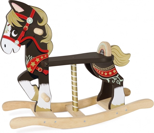Doprajte deťom nadčasovú radosť s dreveným hojdacím koníkom z kolekcie Petilou. Robustná konštrukcia, hladké hrany, opieracie madlá a pohodlné sedlo zaisťujú bezpečie aj pohodlie pri jazde. Elegantný dekor s hnedými a zlatými akcentmi ozdobí každú detskú izbičku.