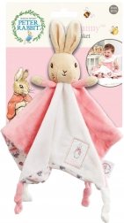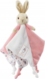 Farby a vzory králíčka stimulujú vývoj detských zmyslov, zatiaľ čo uzlík na rohu dečky je ideálny na hryzenie.