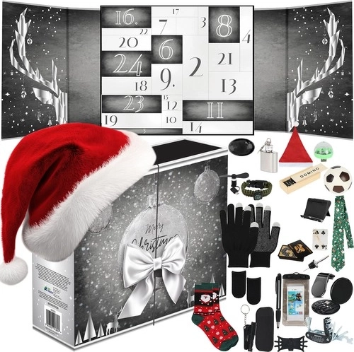Vianočný adventný kalendár sa svojím vzhľadom rozhodne líši od ostatných kalendárov dostupných na internete. V originálnom balení sa nachádza24 darčekov zabalených v samostatných krabičkách s číslami a vianočnými vzormi. Celok je ozdobený farebne zladenou mašľou.
