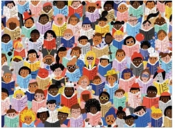 Užite si hodiny zábavy s umeleckým puzzle, ktoré prináša pestrú scénu ľudí ponorených do kníh. Vďaka kvalitnému spracovaniu z recyklovaného papiera a s použitím netoxických atramentov je tento set skvelou voľbou pre rodiny aj milovníkov dizajnu. Hotové puzzle s rozmermi 68,6 × 50,8 cm sa bude krásne vynímať aj v rámčeku.