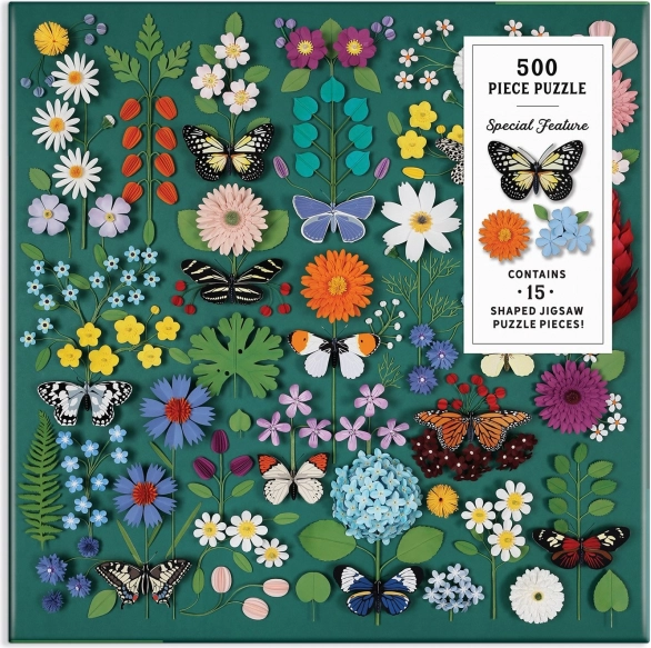 Užite si relaxačné skladanie s puzzle Butterfly Botanica s 500 dielikmi, ktoré zdobia pestré motýle a kvety. Balenie obsahuje aj 15 špeciálne tvarovaných dielikov pre ešte väčšiu zábavu. Vyrobené z recyklovaného papiera a potlačené netoxickými atramentmi v prémiovej kvalite s dielikmi, ktoré do seba presne zapadajú.