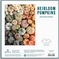Dizajnérsky motív „Heirloom Pumpkins“ od Christine Chitnis prináša pestrú paletu fialových, zelených, žltých aj oranžových tekvíc. Puzzle je balené v matnej, pevnej krabici, ktorá skvelo poslúži aj ako dárkové balenie alebo štýlový úložný box. V balení nájdete tiež plnofarebnú predlohu hotového obrázka.