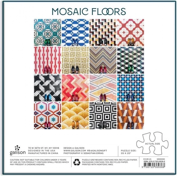 Objavte elegantnú výzvu s puzzle GALISON, ktoré prináša koláž 16 dekoratívnych vzorov podláh. Obsahuje 500 dielikov, je vyrobené z recyklovaného papiera a potlačené netoxickými atramentmi. Vďaka prémiovej kvalite a presnému výseku do seba dieliky perfektne zapadajú a podporujú logické myslenie aj jemnú motoriku.