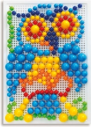 Vytvárajte úžasné mozaiky a vzory s pestrými kolíčkami umiestnenými na pevnej bielej doske.